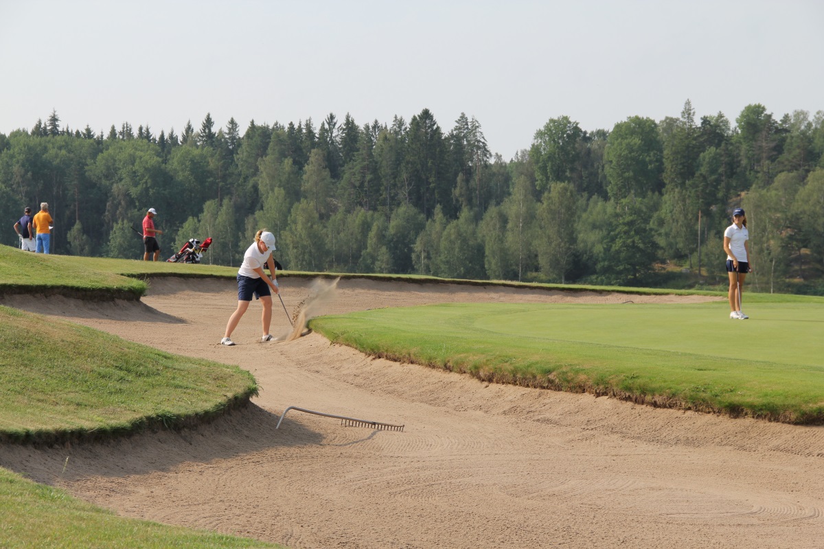 Efter första dagen spel i gynsamt men riktigt varmt väder så leder Ellinor Haag med två slag Över Emilie Alpe tät följt av Sandra Forslund.
